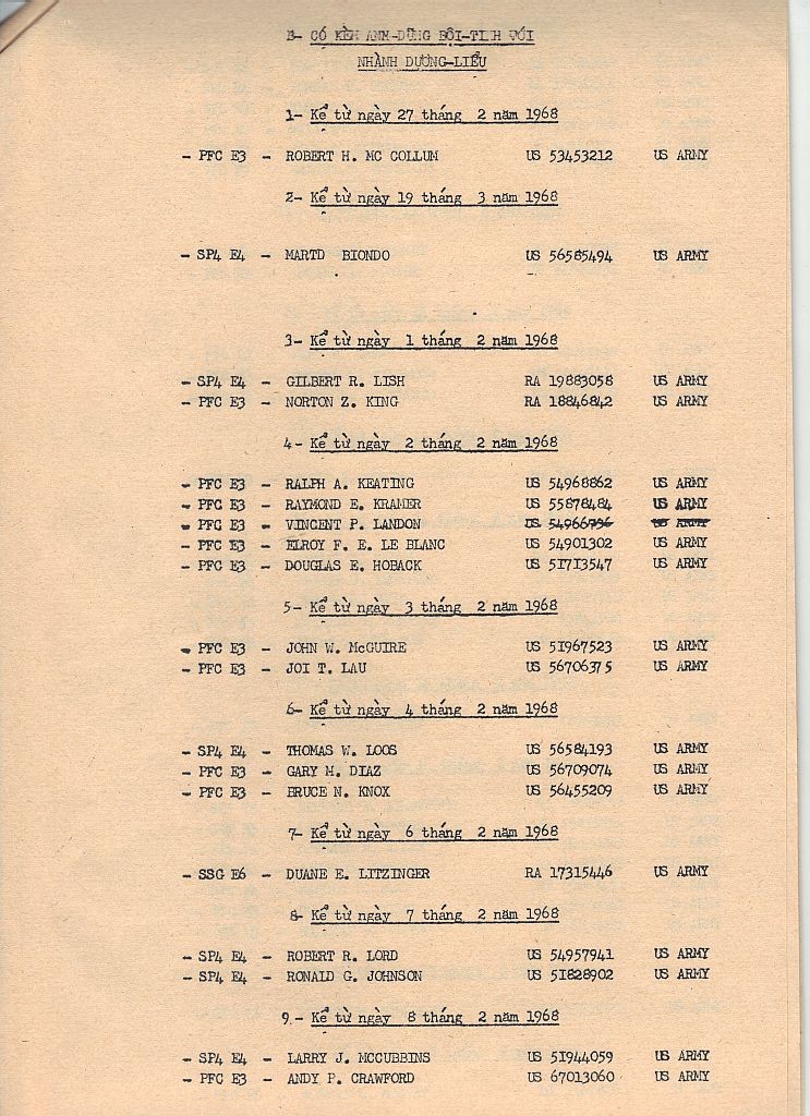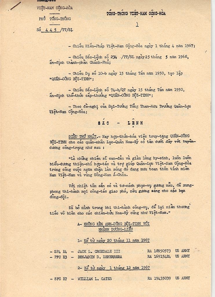QUÂN-CÔNG BỘI-TINH cho các quân-nhân Lục-Quân Hoa-Kỳ có tên dưới đây