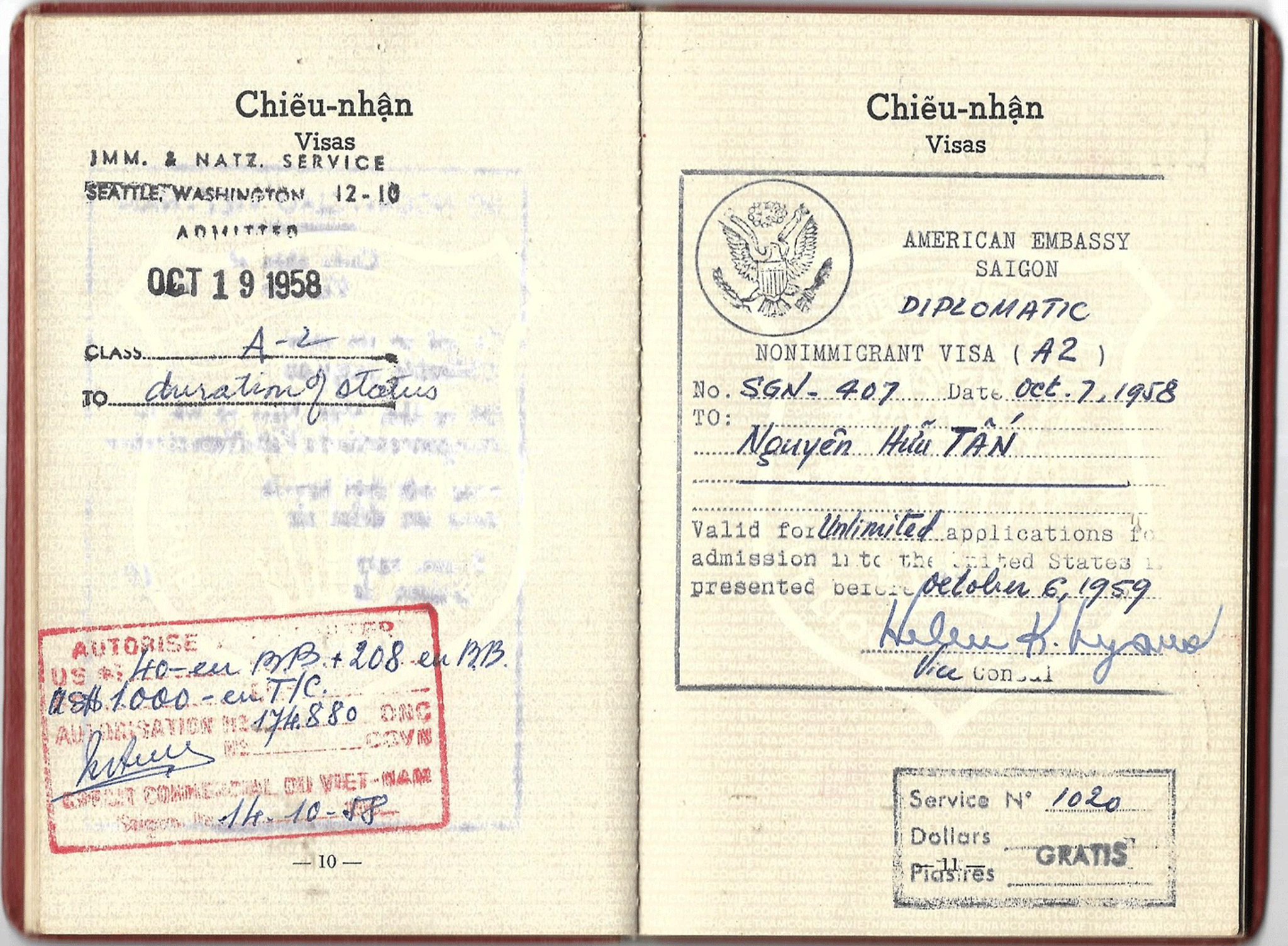 Thông Hành Ngoại Giao Việt Nam Cộng Hòa. Bộ Trưởng Ngoại Giao yêu cầu các Văn và Võ Quan có phận-sự duy-trì trật-tự trên lãnh-thổ Việt-Nam và nhà chức-trách được ủy-thác nhiệm vụ tương-tợ (~~tương-trợ) trong các nước Đồng-Minh và Thân-Hữu để Ông [...] được tự-do thông-hành và khi cần đến, giúp đỡ và bảo vệ đương-sự.