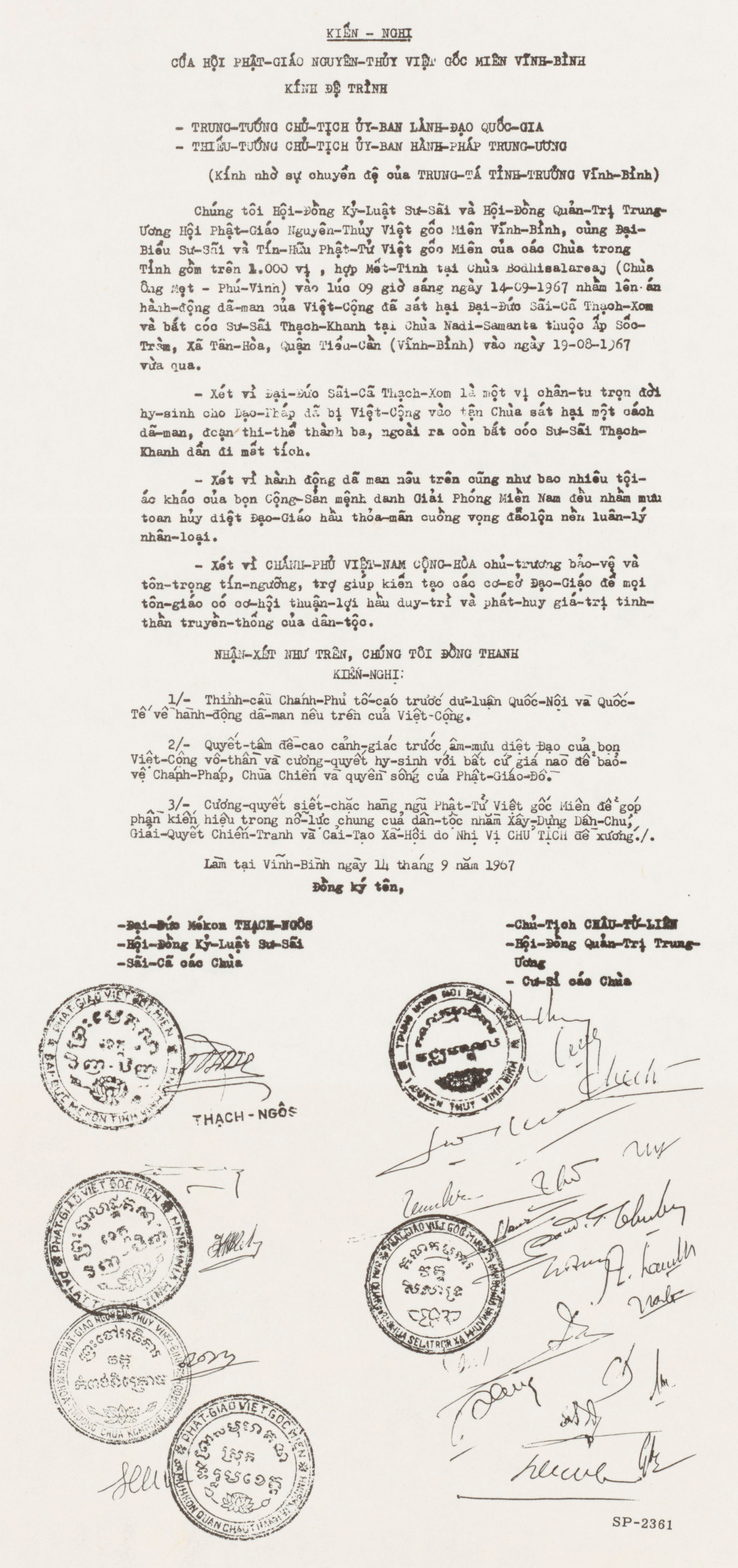 Làm tại Vĩnh-Bình ngày 14 tháng 9 năm 1967